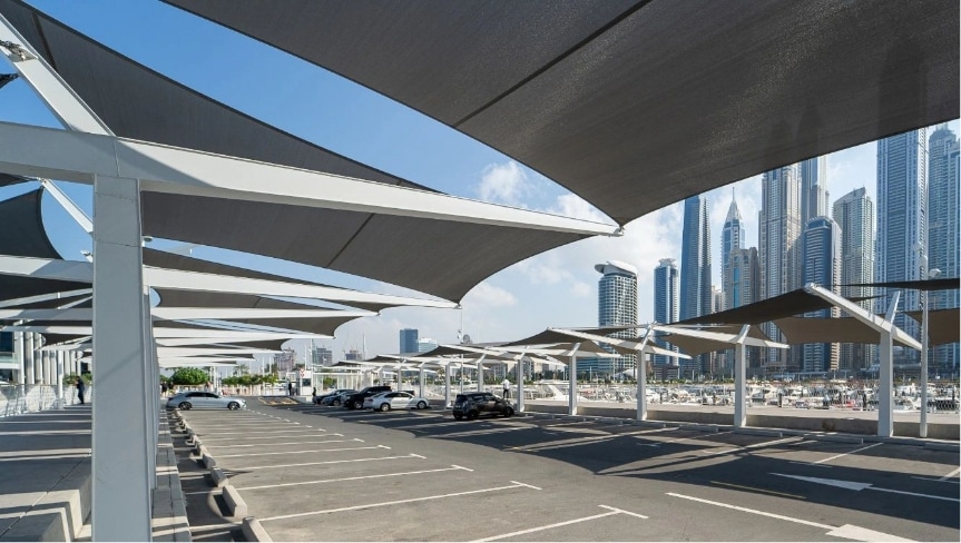 Parking Shade at Dubai Creek Harbor by Hardco Engineering in Ras Al Khor, Dubai, UAE
